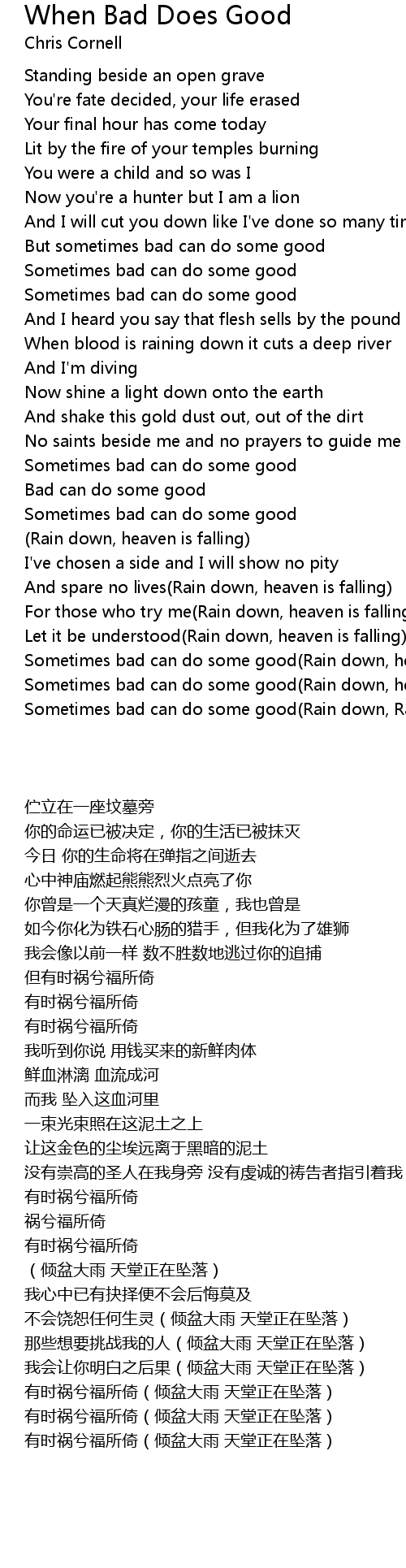 Sometimes bad can do some good(Rain down, heaven is falling) |