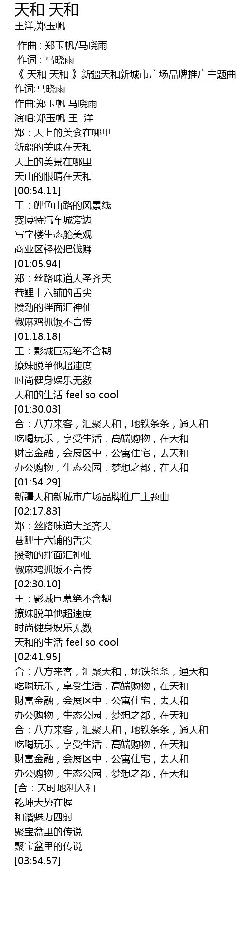 | [00:04.34] | 《 天和 天和 》新疆天和新城市广场品牌推广主题曲 |