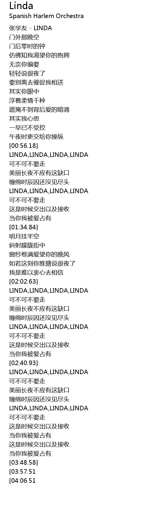 | [04:15.44][03:57.51] | LINDA,LINDA,LINDA,LINDA |