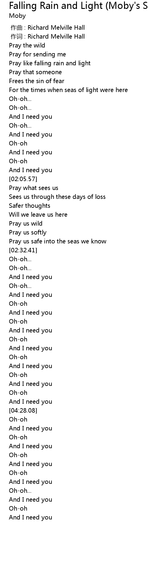 | [00:01.000] | 作词 : Richard Melville Hall |