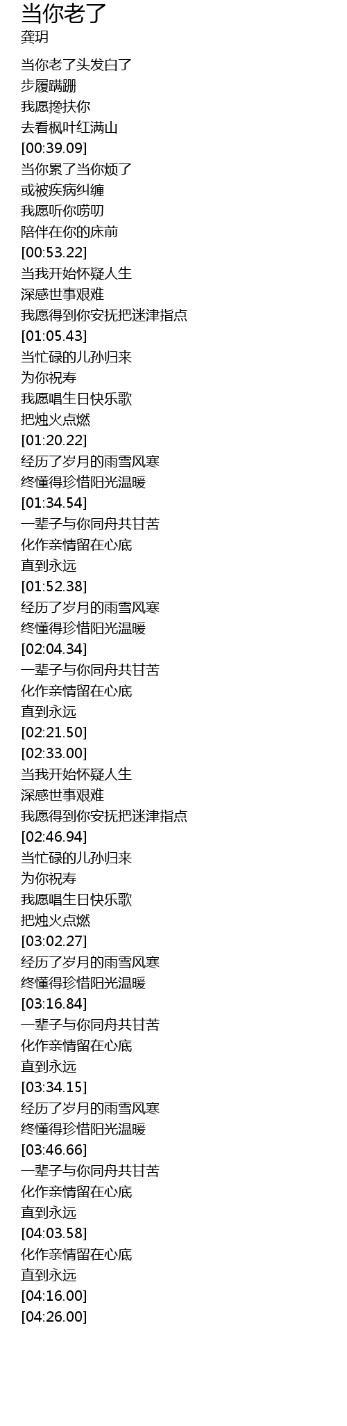 | [00:28.00] | dāng nǐ lǎo le tóu fà bái le |