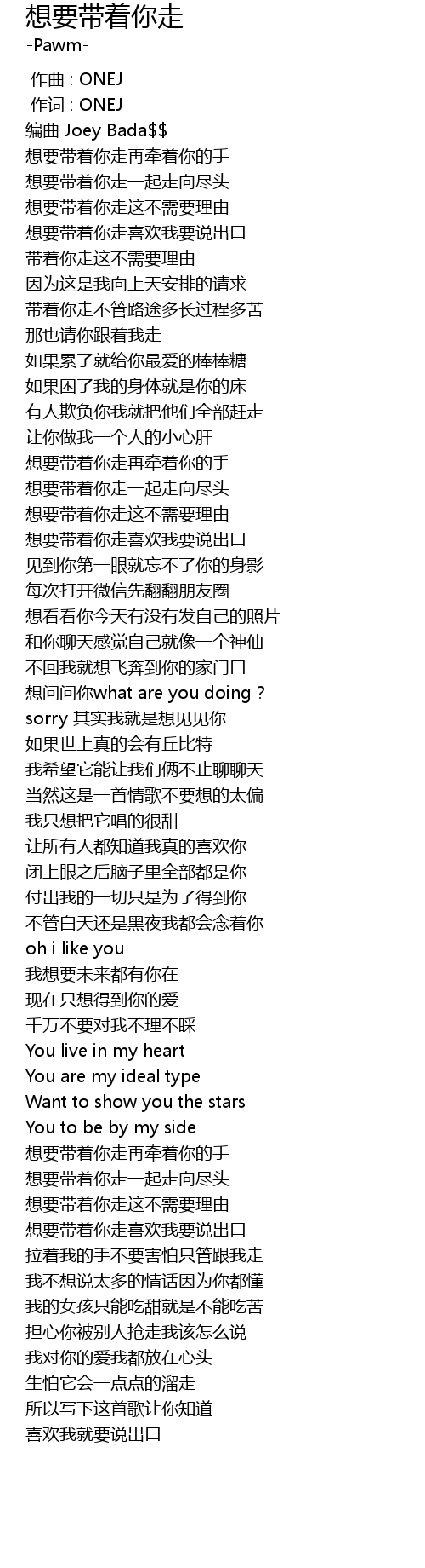 | [00:55.10] | 想要带着你走再牵着你的手 |