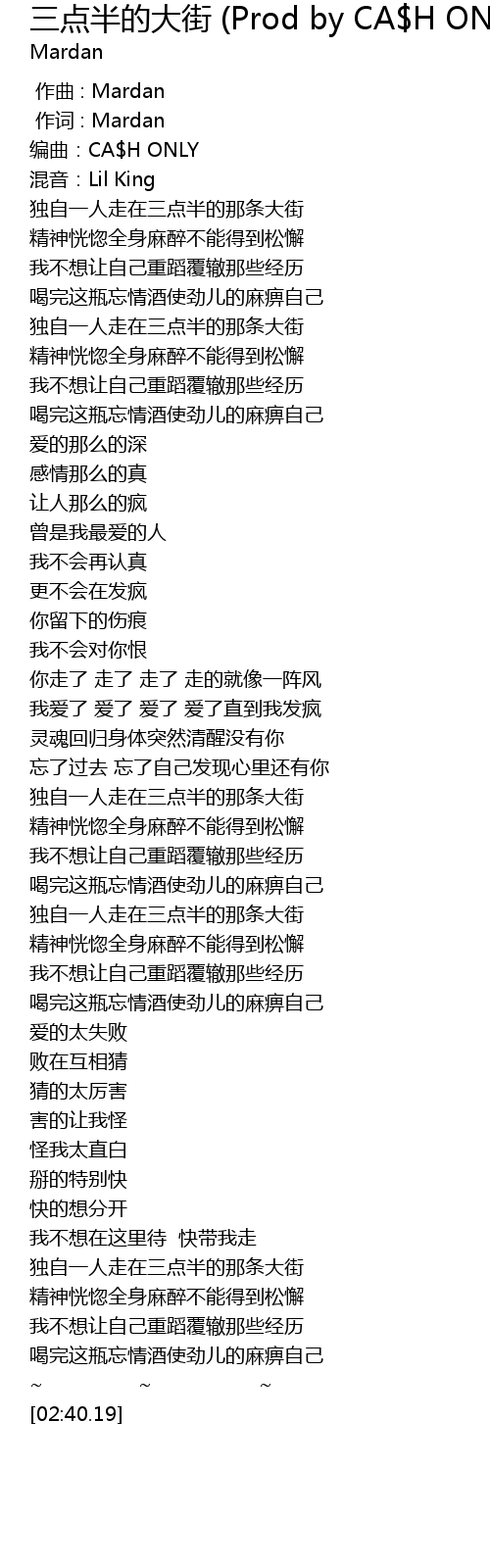 | Album | 三点半的大街(Prod by CA$H ONLY) |