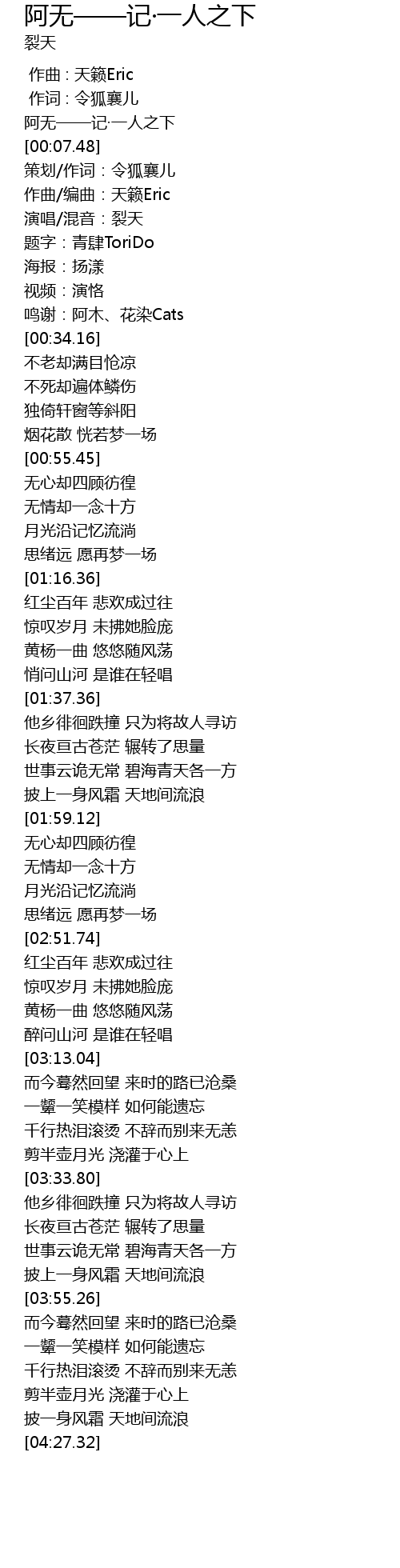 | [00:00.60] | ā wú jì yī rén zhī xià |