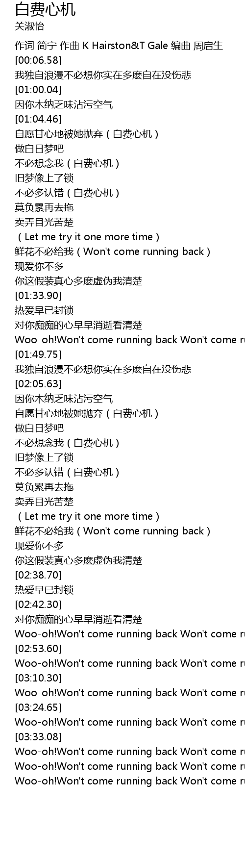 | [02:21.04] | bù bì duō rèn cuò bái fèi xīn jī |