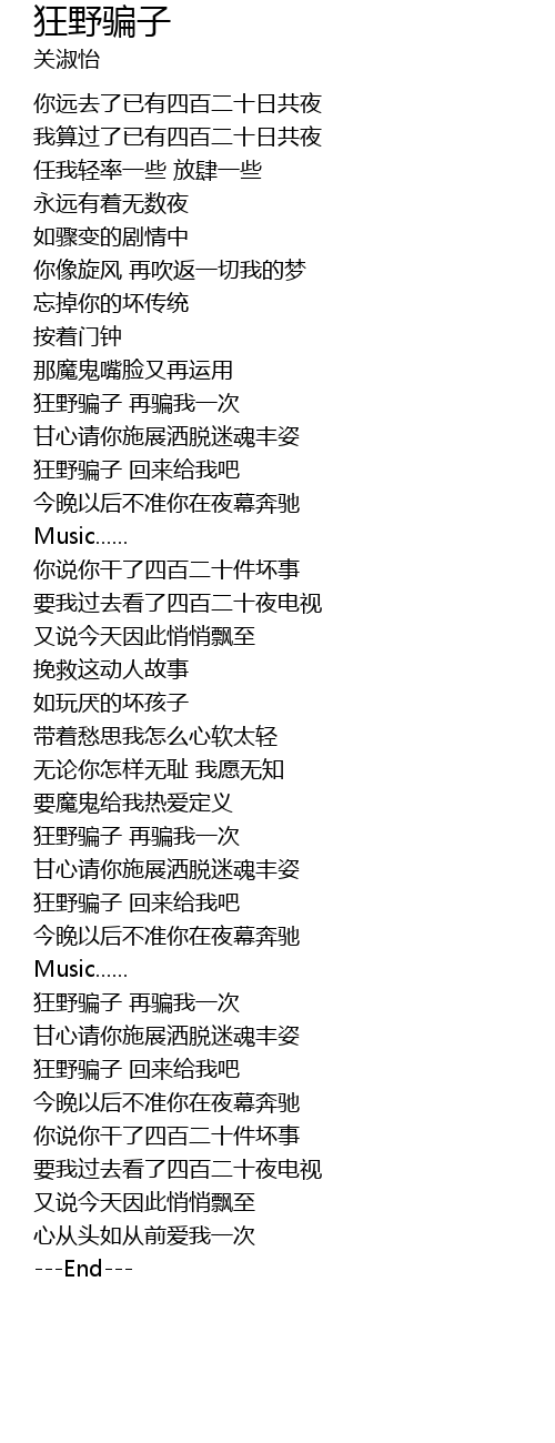 | [02:43.26] | 狂野骗子 回来给我吧 |