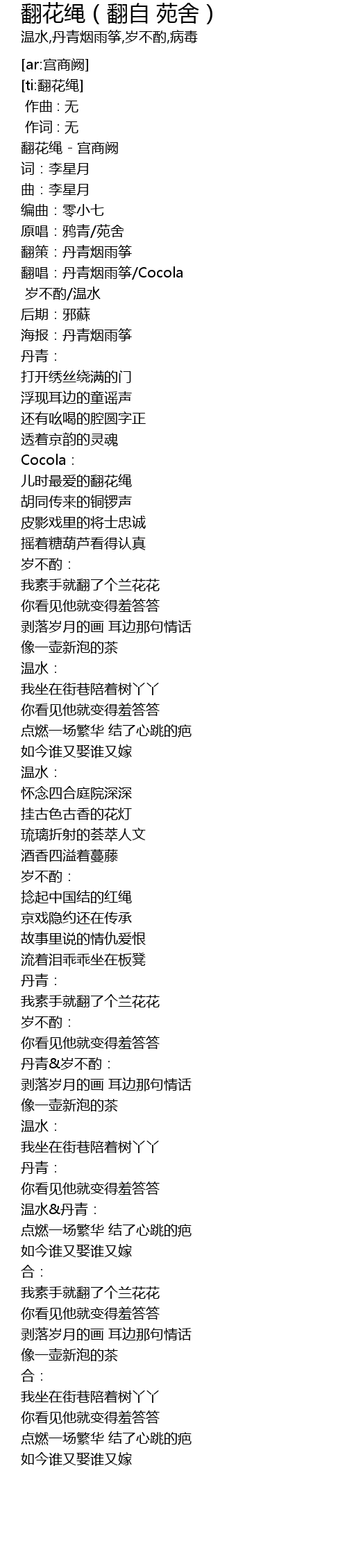 | [00:00.72] | 翻花绳 - 宫商阙 |