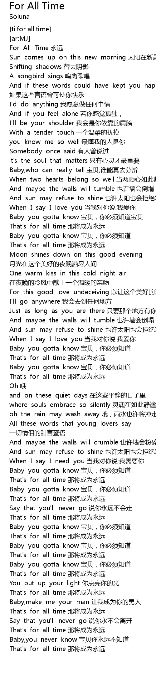 | [00:07.04] | For All Time yong yuan |