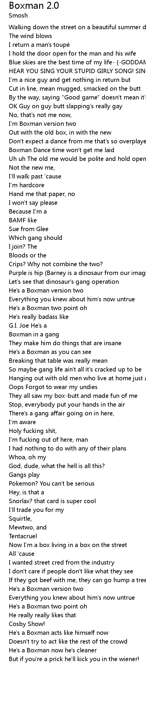 | Blue skies are the best time of my life GODDAMMIT BOXMAN! NO ONE WANTS TO HEAR YOU SING YOUR STUPID GIRLY SONG! SING SONETHING, BETTER! | |