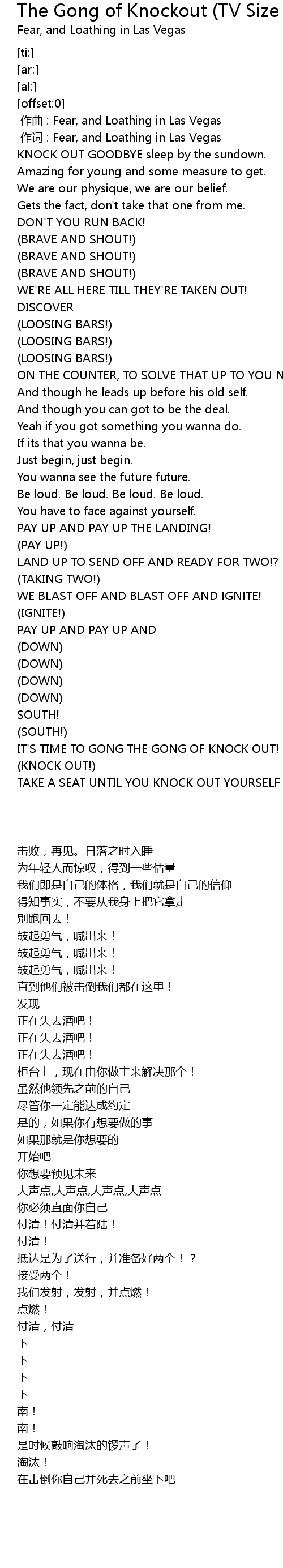 | [00:01.000] | 作词 : Fear, and Loathing in Las Vegas |