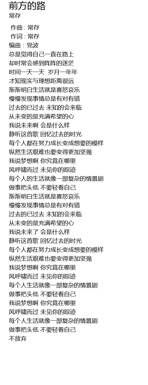 | [00:01.000] | 作词 : 常存 |