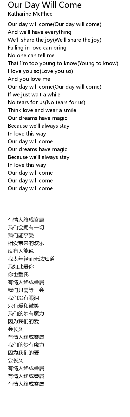 Our day will come(Our day will come) |