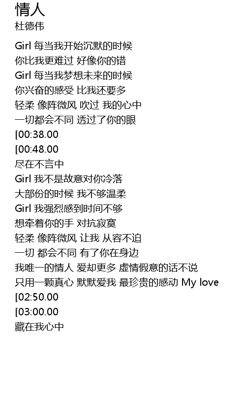 | [01:44.00][00:38.00] | qing ren ai que geng duo xu qing jia yi de hua bu shuo |