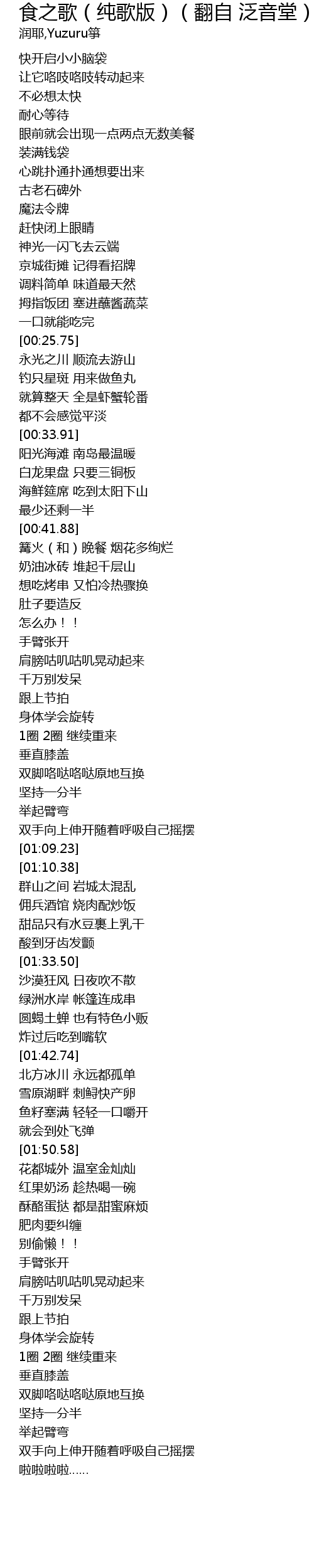 | [01:41.00] | zhà guò hòu chī dào zuǐ ruǎn |