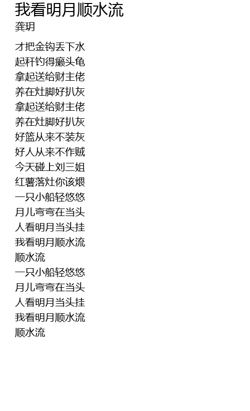 | [03:04.87] | wǒ kàn míng yuè shùn shuǐ liú |