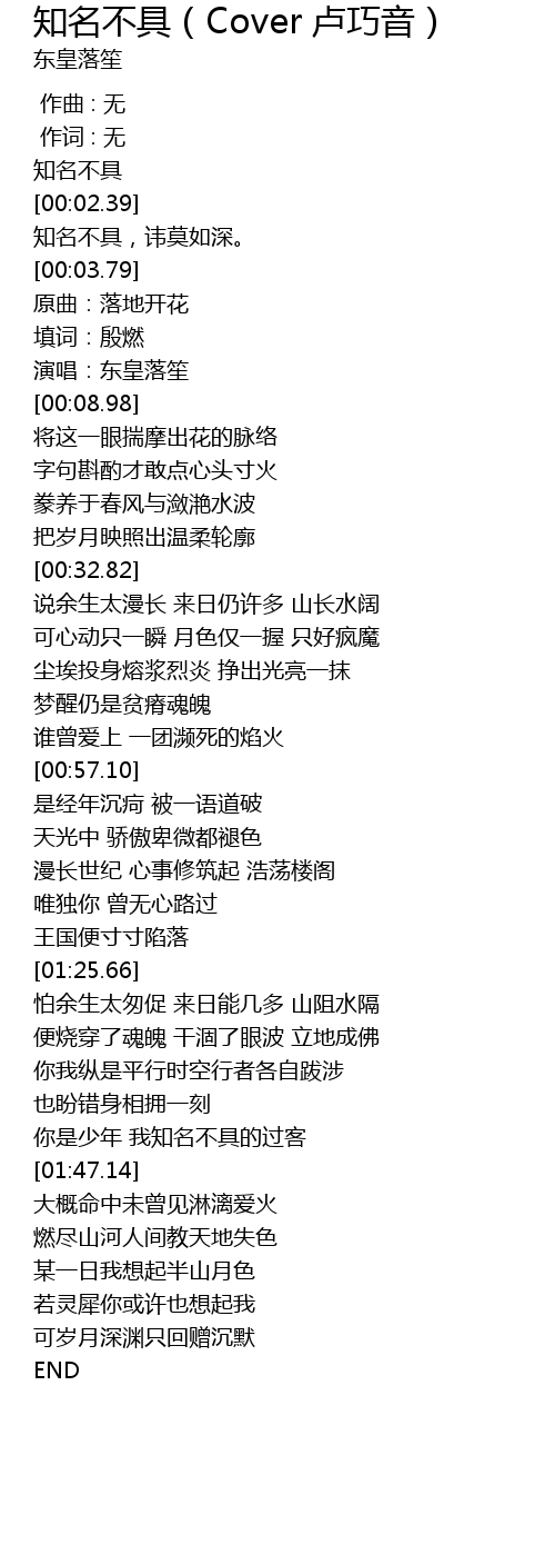 | [00:03.09] | 知名不具,讳莫如深。 |