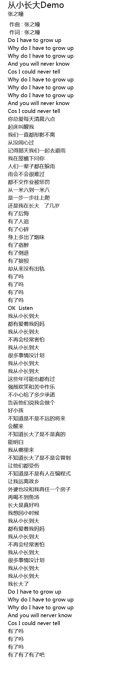 | Song | 从小长大Demo |