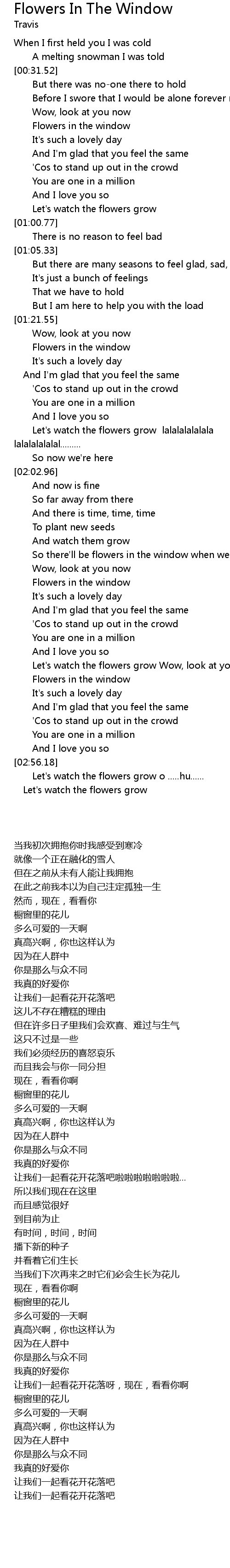 | [03:03.40] | Let' s watch the flowers grow |