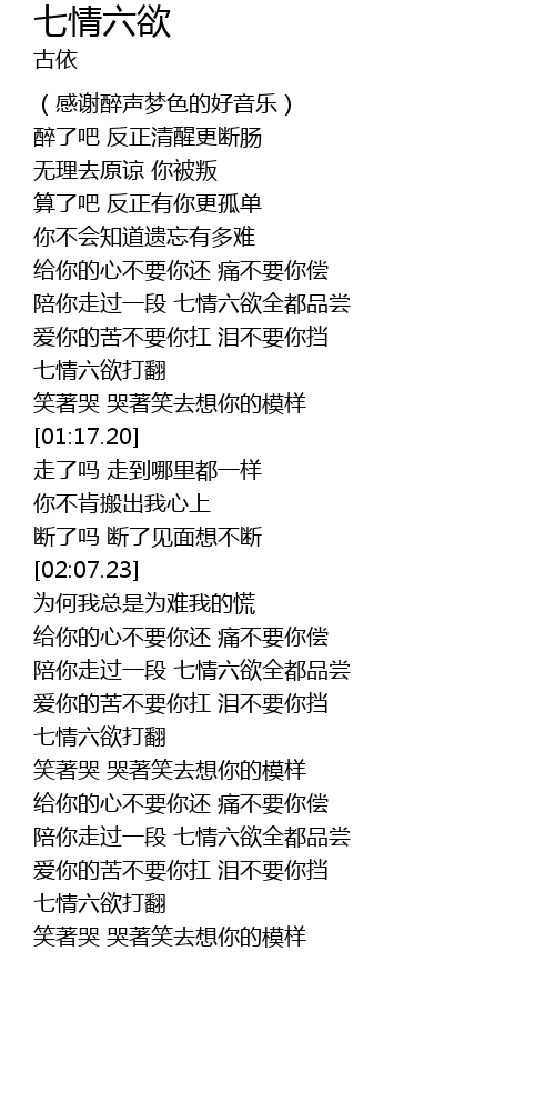 | [02:36.56] | qī qíng liù yù dǎ fān |