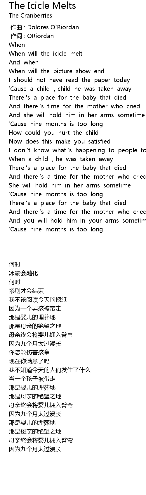 | [00:00.00] | 作曲 : Dolores O`Riordan |