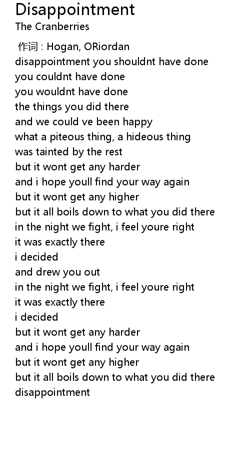 | [00:11.900] | disappointment you shouldnt have done |
