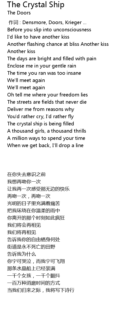 | [00:00.00] | 作词 : Densmore, Doors, Krieger ... |