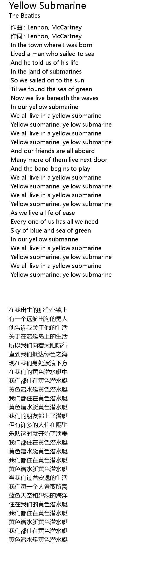 | [00:44.0] | We all live in a yellow submarine |