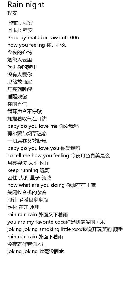 | [01:41.76] | rain rain rain 外面下着雨 |