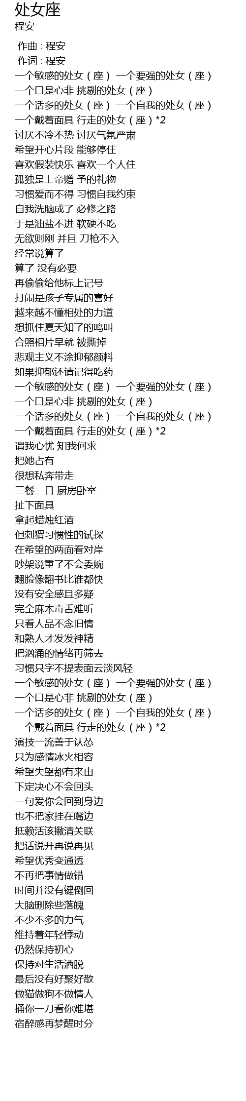 | [02:28.48] | 一个敏感的处女(座) 一个要强的处女(座) |