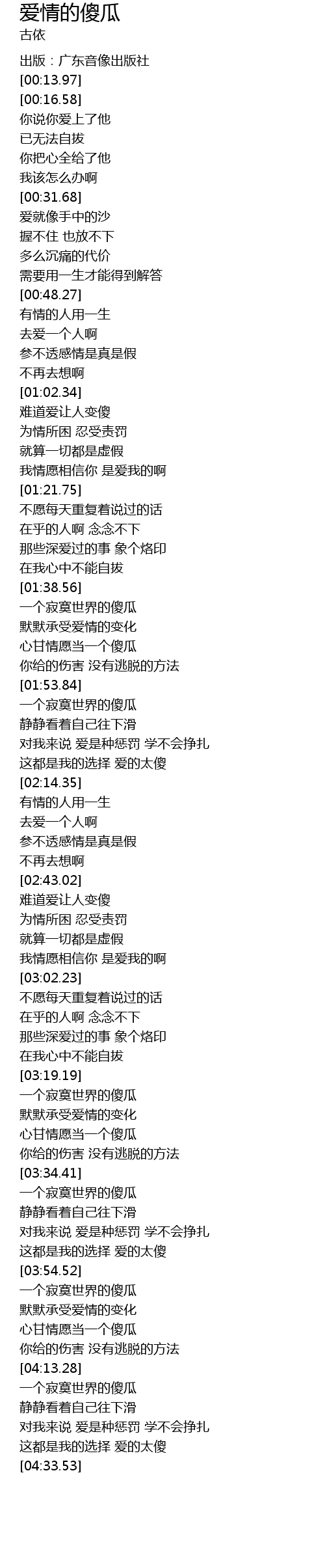| [04:05.72] | xīn gān qíng yuàn dāng yí gè shǎ guā |