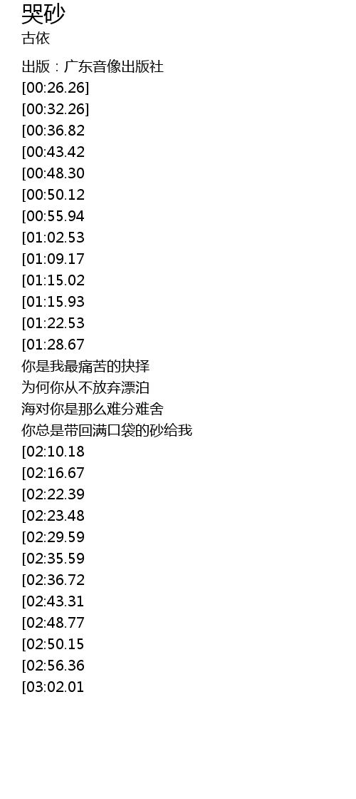 | [00:16.58] | chu ban: guang dong yin xiang chu ban she |