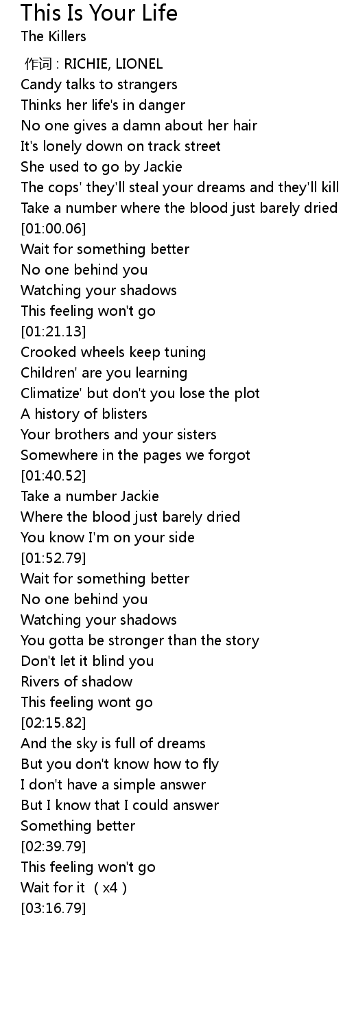 | [00:48.27] | The cops' they' ll steal your dreams and they' ll kill your prayers |
