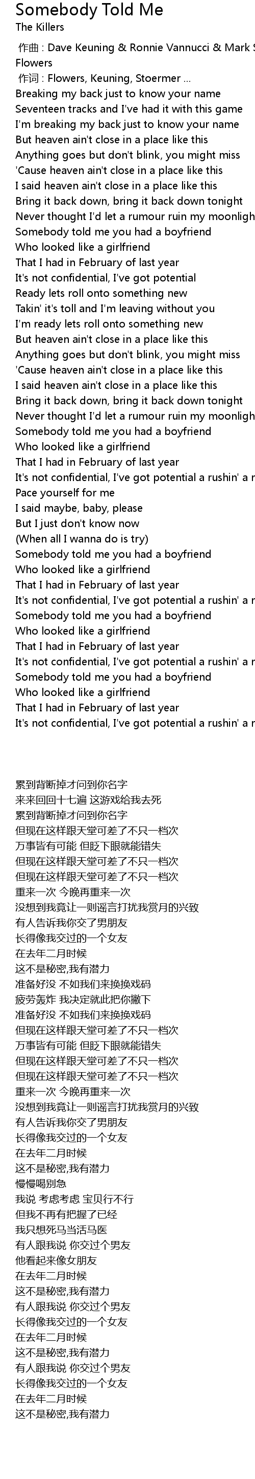 | [00:00.00] | zuo qu : Dave Keuning Ronnie Vannucci Mark Stoermer Brandon Flowers |