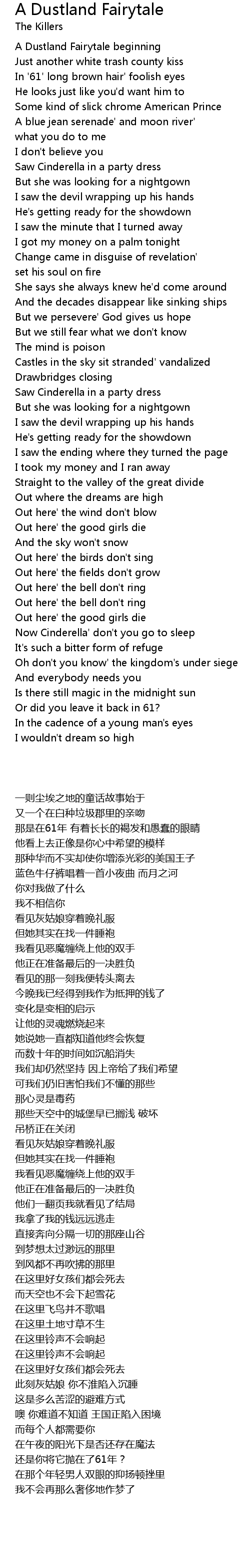 A Dustland Fairytale Lyrics
