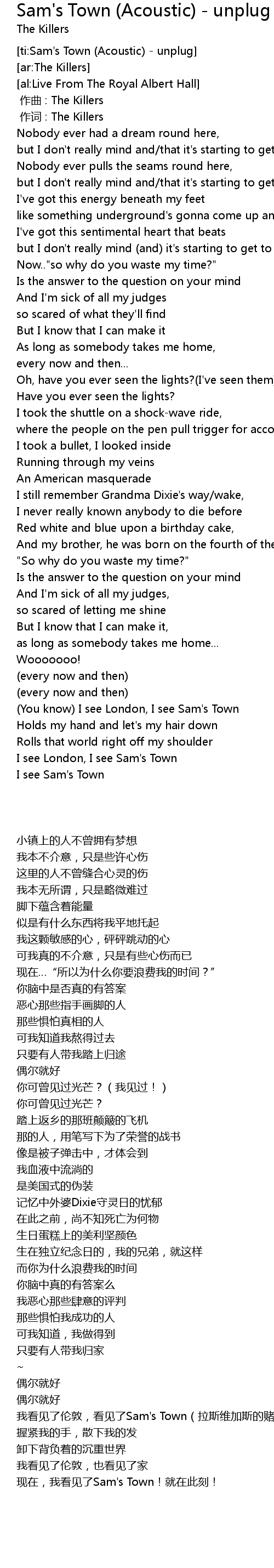 | [ti:Sam's Town (Acoustic) - unplug] | |