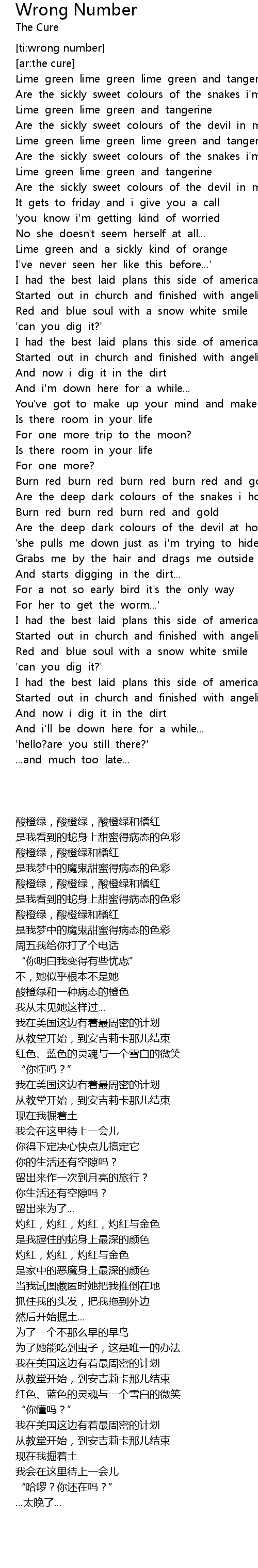 | [00:59.78] | Are the sickly sweet colours of the devil in my dreams |
