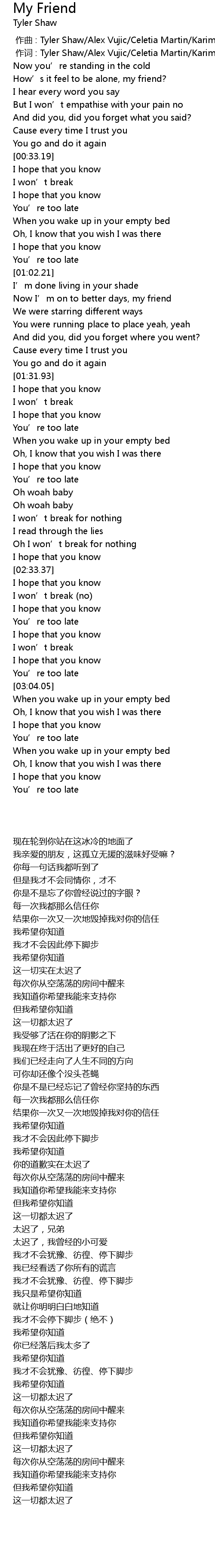| [00:00.000] | 作曲 : Tyler Shaw/Alex Vujic/Celetia Martin/Karim Brewer |