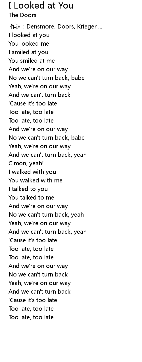 | [00:00.00] | 作词 : Densmore, Doors, Krieger ... |