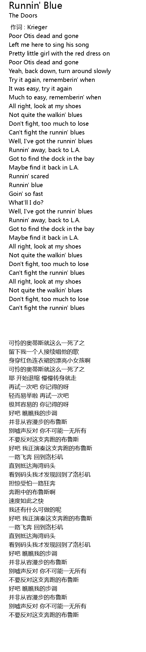 | [00:47.30] | Well, I' ve got the runnin' blues |