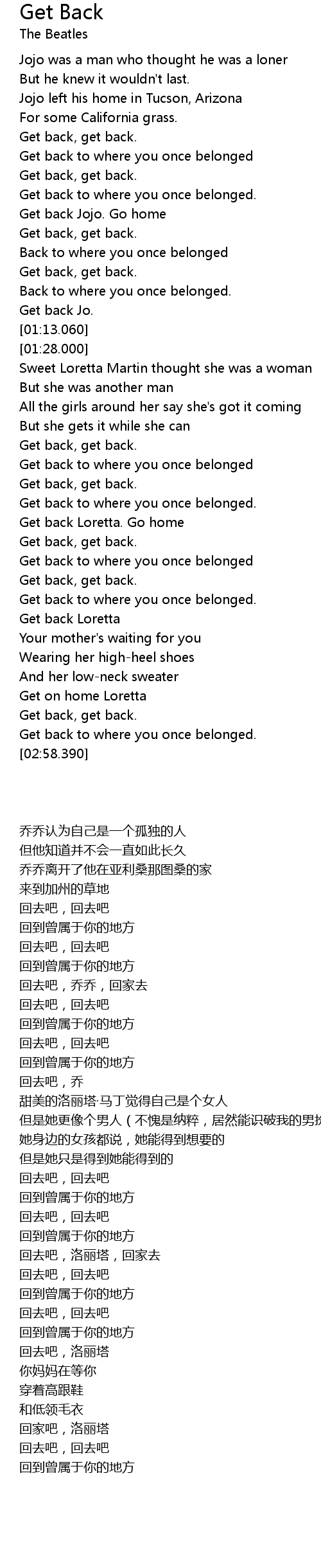 Get back to where you once belonged |