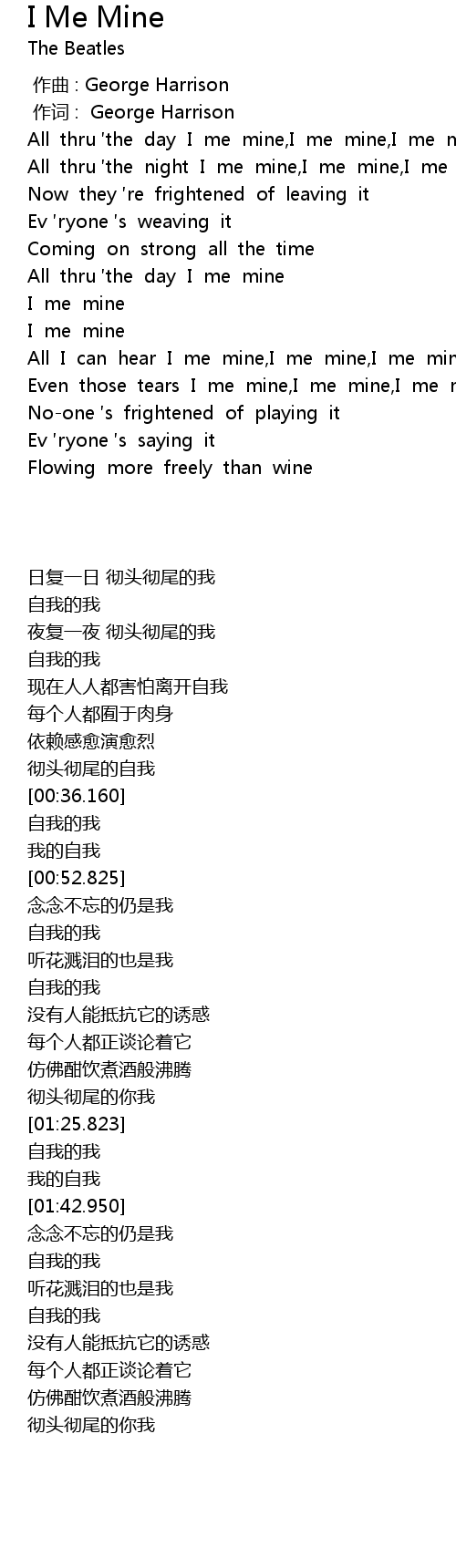 | [00:17.84] | All thru the day I me mine, I me mine, I me mine |