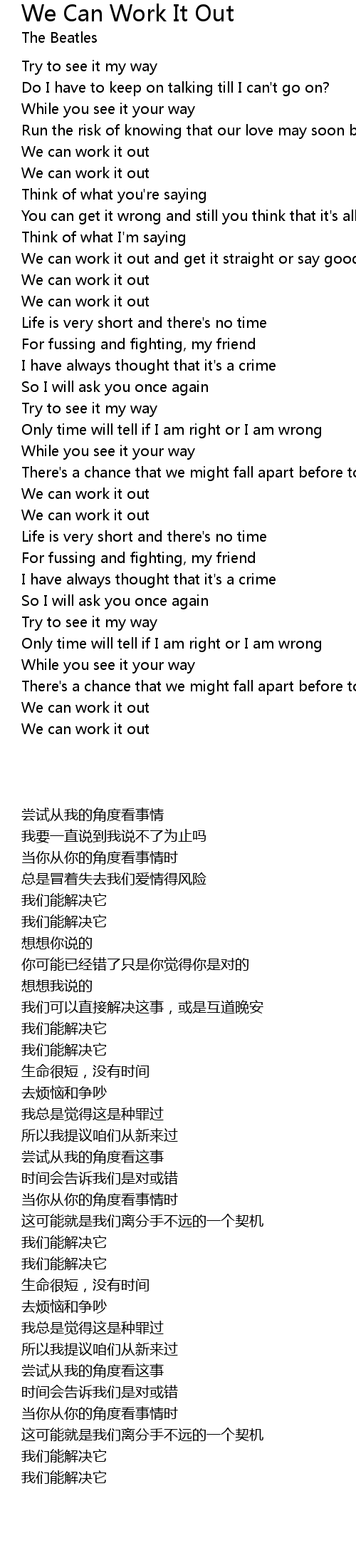 Song We Can Work It Out