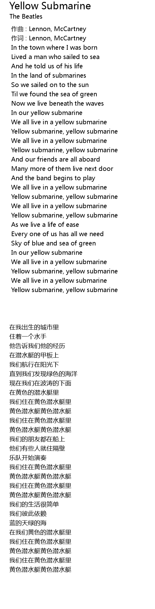 | [00:48.000] | Yellow submarine, yellow submarine |