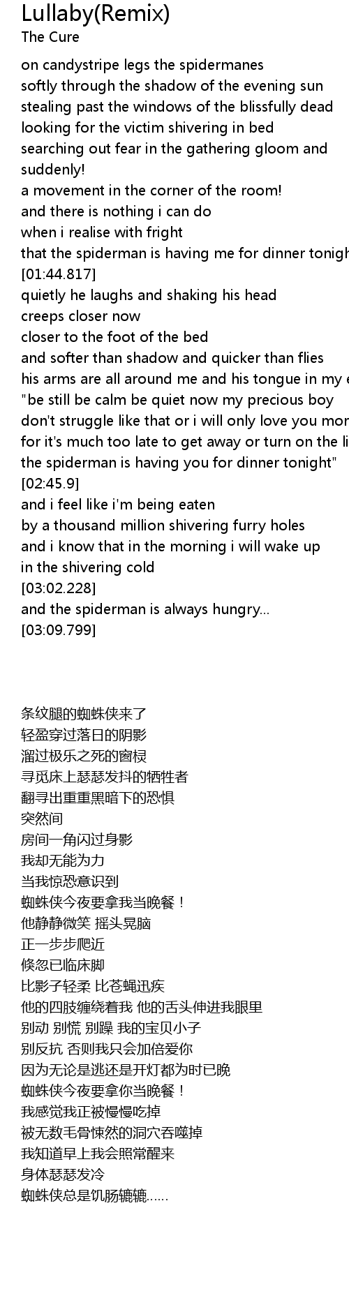 | [02:40.9] | the spiderman is having you for dinner tonight" |