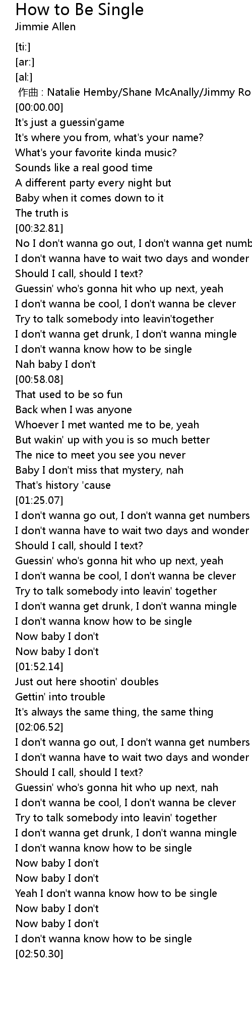 | [02:37.33] | Yeah I don't wanna know how to be single |