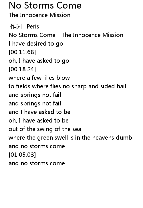 | [00:00.97] | No Storms Come - The Innocence Mission |