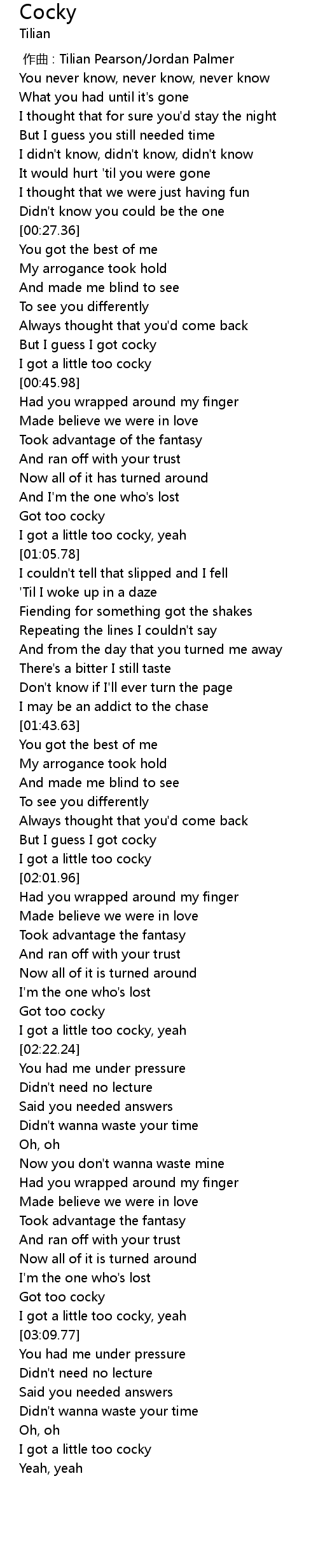 | [00:19.51] | I didn't know, didn't know, didn't know |