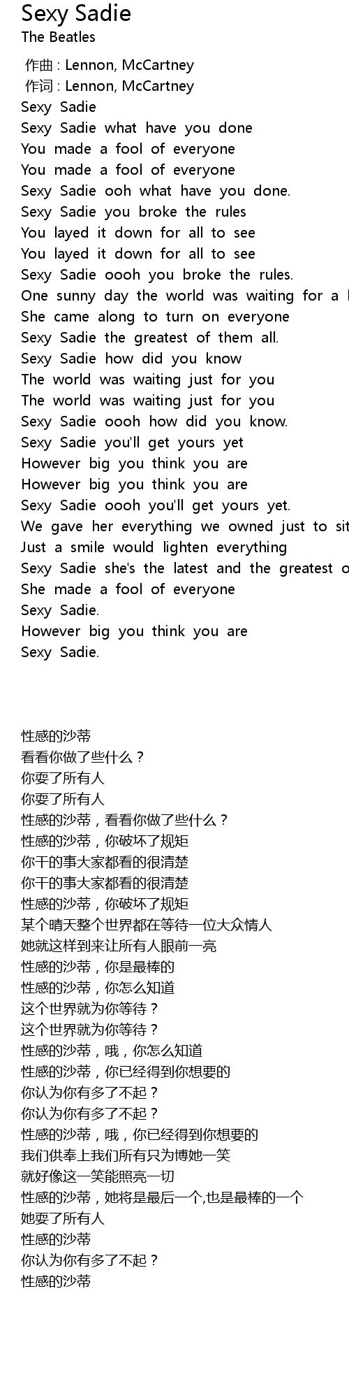 | [01:51.71] | Sexy Sadie oooh you'll get yours yet. |