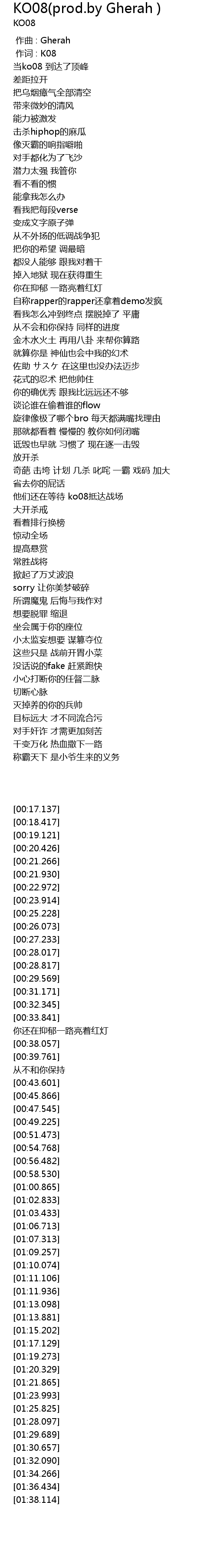 | [00:38.057] | 自称rapper的rapper还拿着demo发疯 |