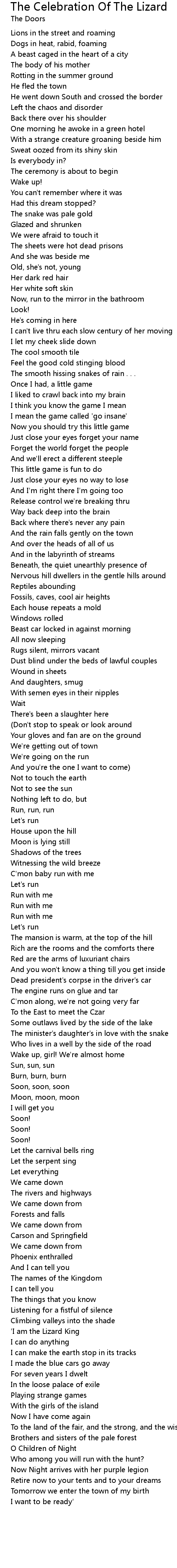 The Celebration Of The Lizard Lyrics